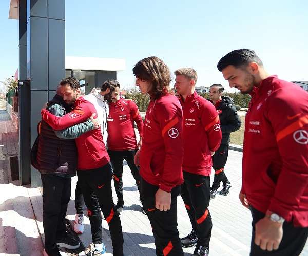 Milli Takımlardan Sorumlu TFF Yönetim Kurulu Üyesi Hamit Altıntop, kafileyi karşılayan baba Ali Çalık'a A Milli Takım takım adına başsağlığı ve sabır diledi.