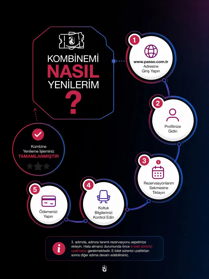 Kombinesini yenilemek isteyen bordo-mavili taraftarların 28 Nisan Salı günü saat 18.00’e kadar şu adımları izlemesi gerekiyor: