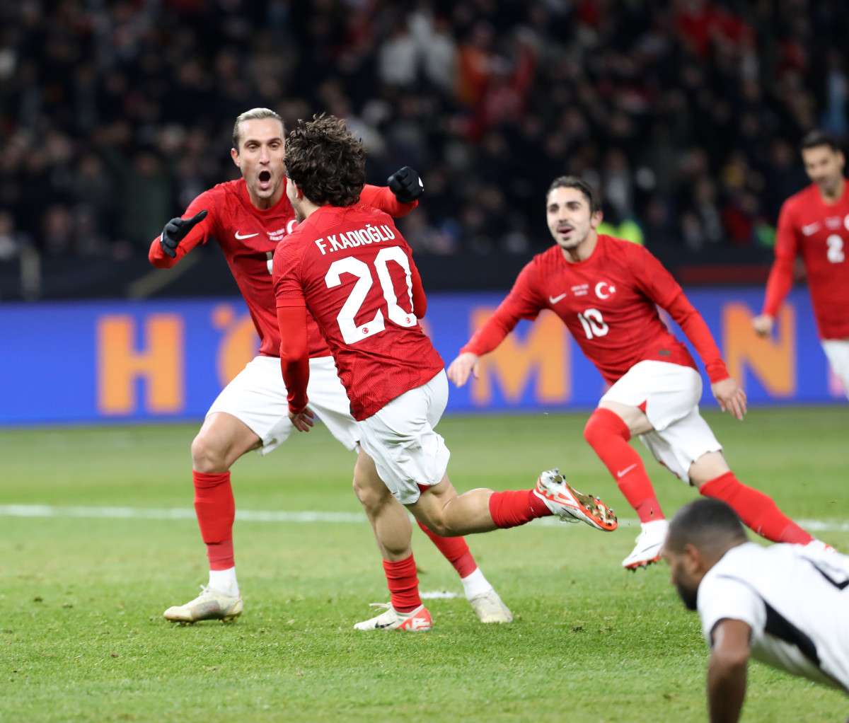A Millî Takımımız, özel maçta karşılarşığı Almanya'yı deplasmanda 3-2 mağlup etti. Berlin'deki Olimpiyat Stadı'nda oynanan müsabakada Ay-Yıldızlılarımızın gollerini 38. dakikada Ferdi Kadıoğlu, 45+2. dakikada Kenan Yıldız ve 70. dakikada penaltıdan Yusuf Sarı atarken, rakibimiz Almanya'nın gollerini 5. dakikada Kai Havertz ve 49. dakikada Niclas Füllkrug kaydetti.