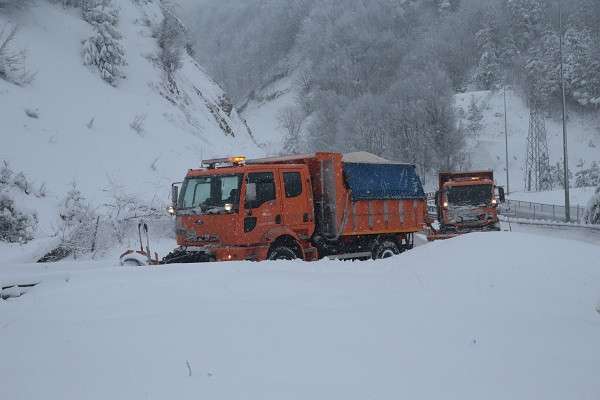 Kar kalınlığının yarım metreye yaklaşığı bölgede, karayolları ekipleri kar küreme ve tuzlama çalışmaları yürütüyor.