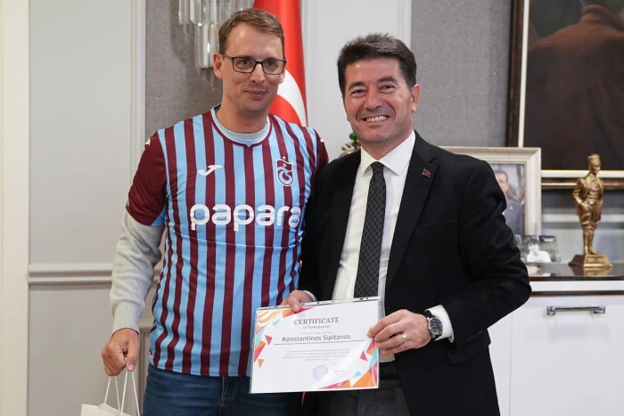 Başkan Kaya, önümüzdeki dönemde Trabzon'da denizle daha iç içe, düzenli ve erişilebilir sahil alanlarının görüleceğini dile getirdi. Ziyaret sonunda Başkan Kaya, misafirlere Trabzonspor forması hediye etti.