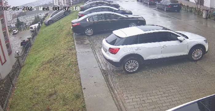 Fren yerine gaza bastı, otomobil site bahçesine uçtu; o anlar kamerada