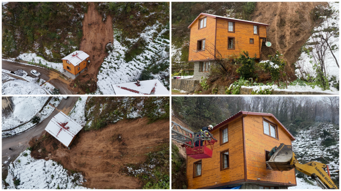 Heyelan, evin giriş kapısını kapattı; mahsur kalanlar pencereden çıkartıldı