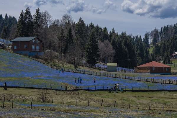 Fotoğraf sanatçıları, sabah saatlerinden gün batımına kadar mavi çiçekleri en güzel şekilde görüntülemek için çabalarken, ziyaretçiler ve horon ekipleri horon oynayarak adeta doğanın canlanmasını kutladı.
