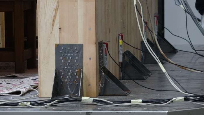 Konuşmaların ardından 'Yeni Nesil Yerli ve Milli Ahşap Yapılarda Deprem Testi Deneyi' de başarıyla gerçekleştirildi. (DHA)