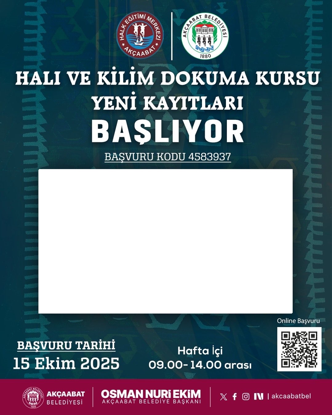 El sanatlarına ilgi duyan ve kadim kültürümüzün izlerini taşıyan halı ve kilim dokumacılığını öğrenmek isteyenler için önemli bir fırsat doğdu. Akçaabat Halk Eğitim Merkezi iş birliğiyle düzenlenen yeni dönem Halı ve Kilim Dokuma Kursu kayıtları bugün başladı. Kurs, katılımcılara hem beceri kazandırmayı hem de kültürel mirası yaşatmayı hedefliyor.