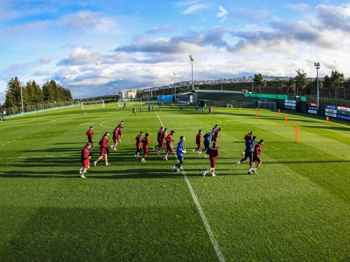 Kamp Başladı: Antrenmanın ardından tesislerde kampa giren oyuncular, maç saatini beklemeye başladı.