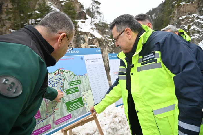 Trabzon Büyükşehir Belediye Başkanı Ahmet Metin Genç, Devlet Su İşleri (DSİ) Genel Müdürü Mehmet Akif Balta ile birlikte, Maçka ilçesinde yapılması planlanan Karakaya Barajı’nın aks yerinde incelemelerde bulundu.