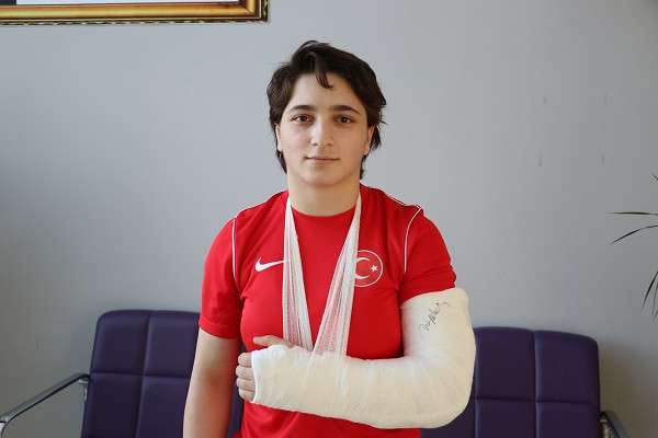 "Büyükler Avrupa Şampiyonası'na ilk defa katıldım. Hedeflerim büyüktü ama şanssızlık oldu. Üçüncülük maçının 30. saniyesinde kolumdan sakatlandım ve bu da yenilmeme neden oldu. Hamle yapıp puan alma çabasındaydım. O anda kolum kırıldığı halde maça devam ettim. Acı, sızı hissettim, bırakmayı da düşündüm. Ancak kürsüye çıkma şansım vardı, önemli maçtı. 'Alırım, çeviririm belki.' dedim ama parmaklarım ve dirseğimi hissetmedim. 'Bir yere kadar dayanırım.' dedim. Maçı bitirdim ama kaybettim. Doktorlar, 1 ay beklemem gerektiğini söylediler. Tedavime başlandı."