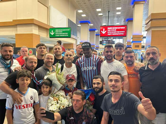 Yeniden Trabzonspor forması giyecek Nijeryalı futbolcuyu kulüp yetkilileri ve çok sayıda taraftar karşıladı.