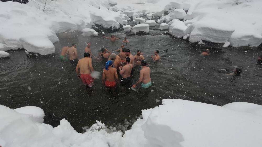 Suya girince vücudun alıştığını ifade eden Ömer Yılmaz, "Su gayet sıcak. Ben her sene deneyimliyorum. Kar yağışıyla beraber daha güzel oldu. Suya girdikten sonra vücut daha dinç oluyor” ifadelerini kullandı.