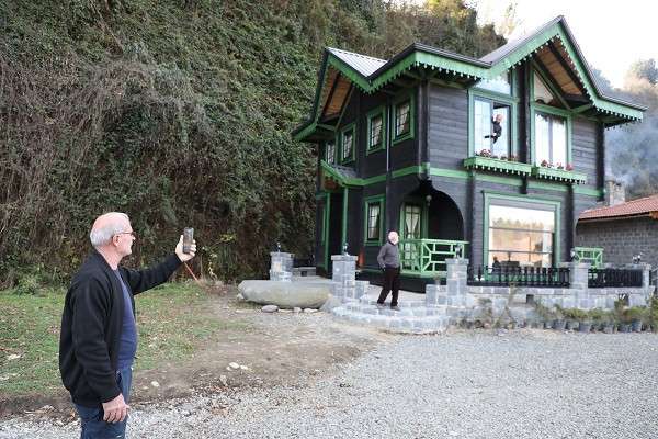 RİZE (AA) - Rize'nin Ardeşen ilçesinde Cemil Eksilmez, yere döşediği raylı sistem üzerine çark ve tekerler yardımı ile 360 derece dönen 2 katlı ev yaptı.