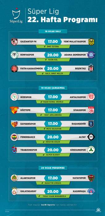 Süper Lig 22. Hafta Programı