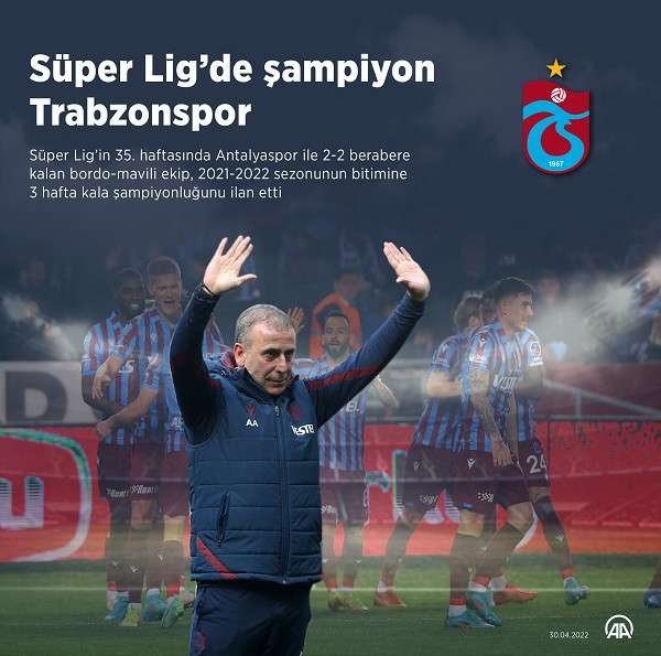 Bordo-mavililer, ligin bitimine 3 hafta kala şampiyonluğunu ilan ederek 2021-2022 sezonunda mutlu sona ulaştı.
