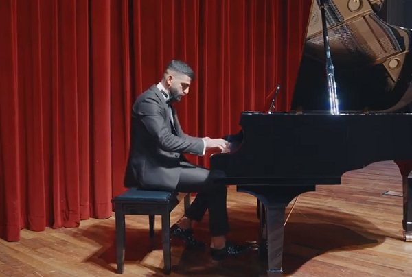 Umut Bozuk “Biz Dar Sokaklarında” marşını piyanoda çaldı.