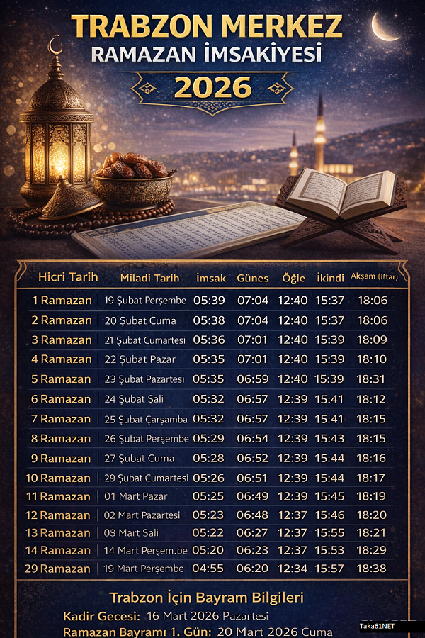 Trabzon Merkez Ramazan İmsakiyesi 2026