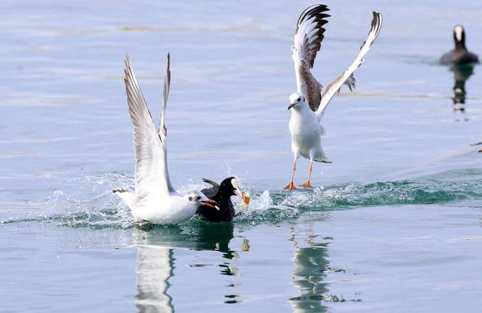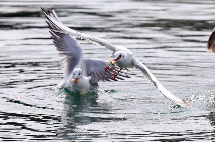 Trabzon da son haftalarda etkili olan soğuk ve kar yağışlı havanın ardından güneş kendini gösterdi. Faroz Balıkçı Barınağı'ndaki martılar, insanların attıkları simitlerle beslendi.
