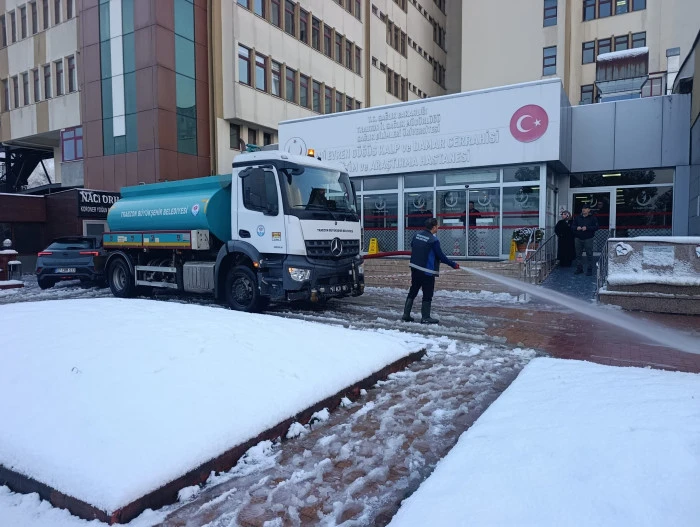 Trabzon Büyükşehir Belediyesi ekipleri, gece etkili olan kar yağışının ardından şehir merkezinde kar temizleme seferberliği başlattı.