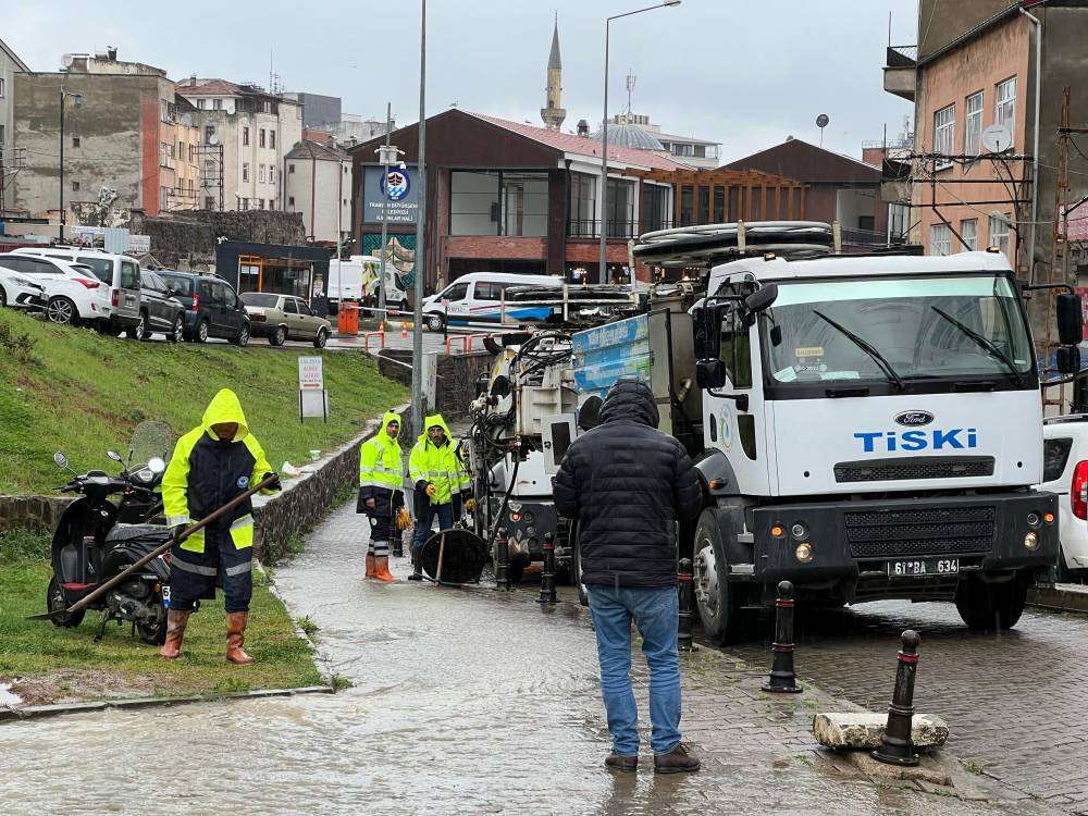 Kentte dün akşam saatlerinde başlayıp, etkisini sürdüren sağanak, yaşamı olumsuz etkiledi. Ortahisar ilçesinde menfezlerin tıkanması sonucu yağmur suları bazı sokakları göle çevirdi. Göle dönen yollarda sürücüler zor anlar yaşarken, Pazarkapı Mahallesi'nde park halindeki otomobil ve minibüs sulara gömüldü. Trabzon Büyükşehir Belediyesi'ne bağlı TİSKİ ekipleri, vidanjörler ile su boşaltma çalışması başlattı. Ekiplerin çalışmasıyla araçlar sudan çıkarıldı. (DHA)