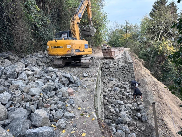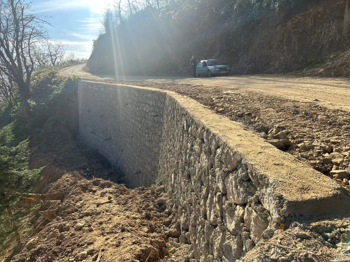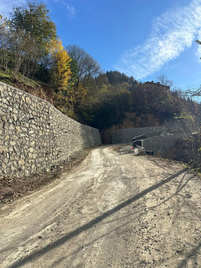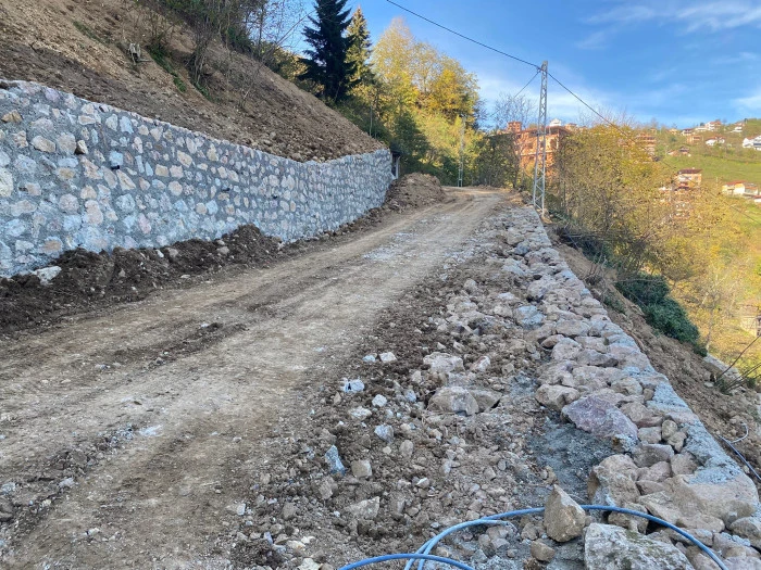 Trabzon Büyükşehir Belediyesi, şehir genelinde yol bakım ve onarım çalışmalarının yanı sıra yol güvenliği açısından da taş duvar çalışmaları yapıyor.
