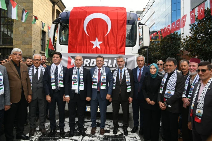 Trabzon Büyükşehir Belediyesi, Hayrat İnsani Yardım Derneği ve İl Milli Eğitim Müdürlüğü iş birliğiyle toplanan 250 ton insani yardım malzemesi, 10 TIR'dan oluşan konvoyla Gazze'ye ulaştırılmak üzere yola çıktı. Kahramanmaraş Caddesi'nde düzenlenen yardım konvoyunu uğurlama törenine, Vali Aziz Yıldırım, Büyükşehir Belediye Başkanı Ahmet Metin Genç ve Hayrat İnsani Yardım Derneği yöneticilerinin yanı sıra, ilçe belediye başkanları, siyasi parti ve sivil toplum kuruluşlarının temsilcileri, kurum müdürleri, öğrenciler ile çok sayıda vatandaş katıldı.