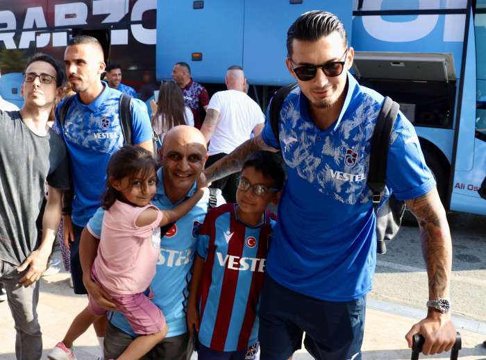 Oyuncular, kendilerine ilgi gösteren bordo-mavili taraftarlar için forma imzalayıp fotoğraf çektirdikten sonra uçakla İstanbul'a hareket etti.