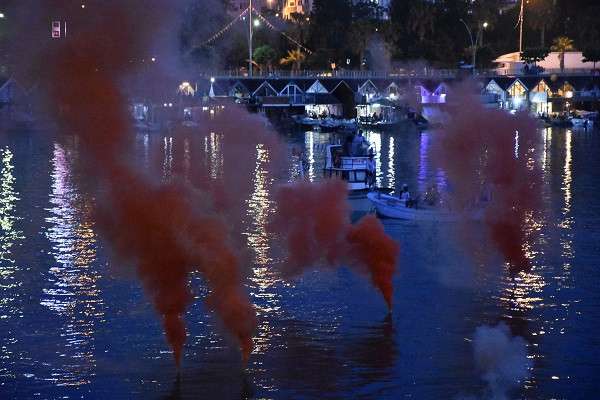 Öte yandan bazı balıkçılarda tekneleriyle kutlamalara eşlik etti.