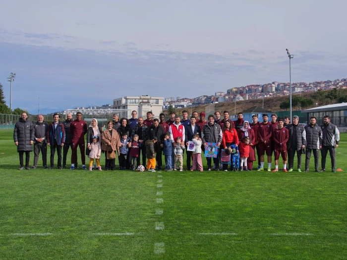 Antrenman öncesinde tesisleri ziyaret eden özel gereksinimli çocuklar, teknik heyet ve futbolcularla bir araya geldi. Bordo-mavili oyuncularla fotoğraf çektiren çocukların mutluluğu antrenman sahasına renk kattı.