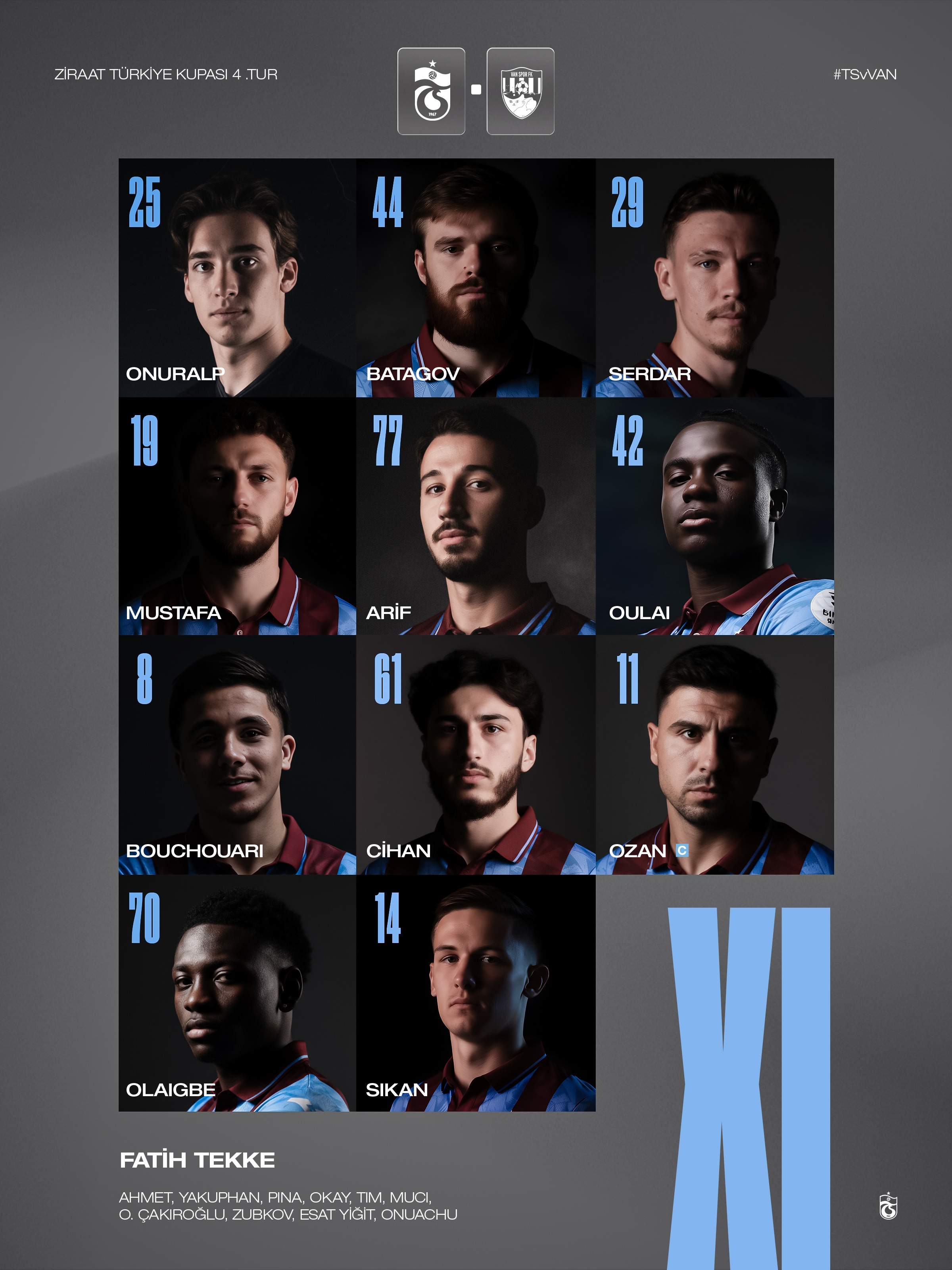 Trabzonspor, Ziraat Türkiye Kupası 4. Eleme Turu'nda İmaj Altyapı Vanspor FK'yı konuk ediyor.İşte İlk 11'ler....