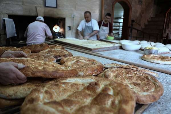 Ustalar, odun ateşiyle yakılan taş fırınların başında istedikleri kıvama gelen hamura elle şekil veriyor.