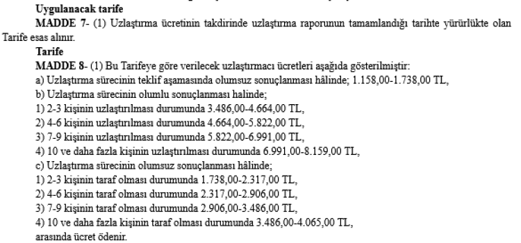 Yeni uzlaştırmacı ücret tarifesi 'Resmi'leşti
