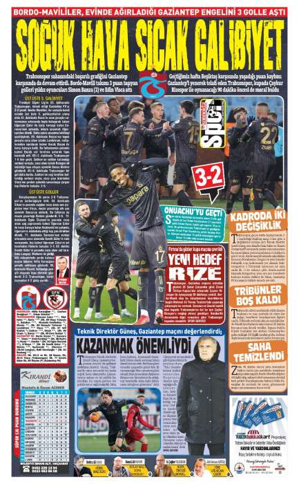 Öte yandan Trabzon’da yayın yapan yerel gazeteler, bordo-mavililerin Gaziantep FK karşısında alınan galibiyeti manşetlerine farklı başlıklarla taşıdı.